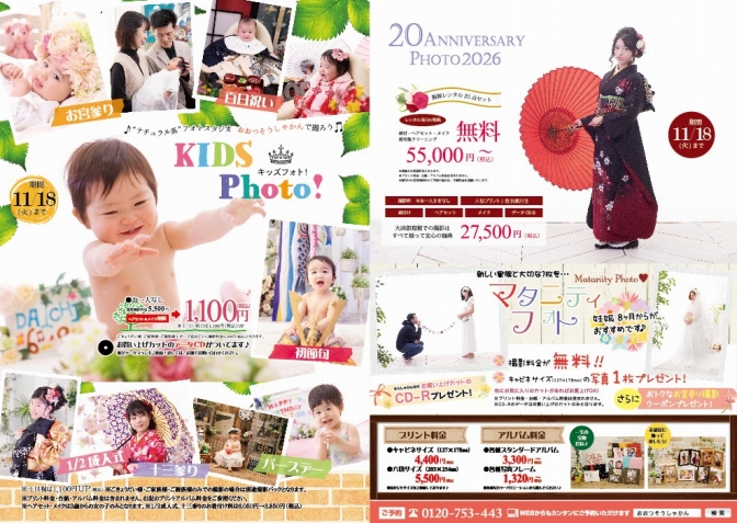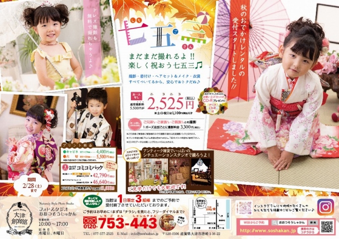 七五三/お宮参り/入園・入学/成人式の記念写真はフォトスタジオ大津創寫舘(おおつそうしゃかん)へ!!